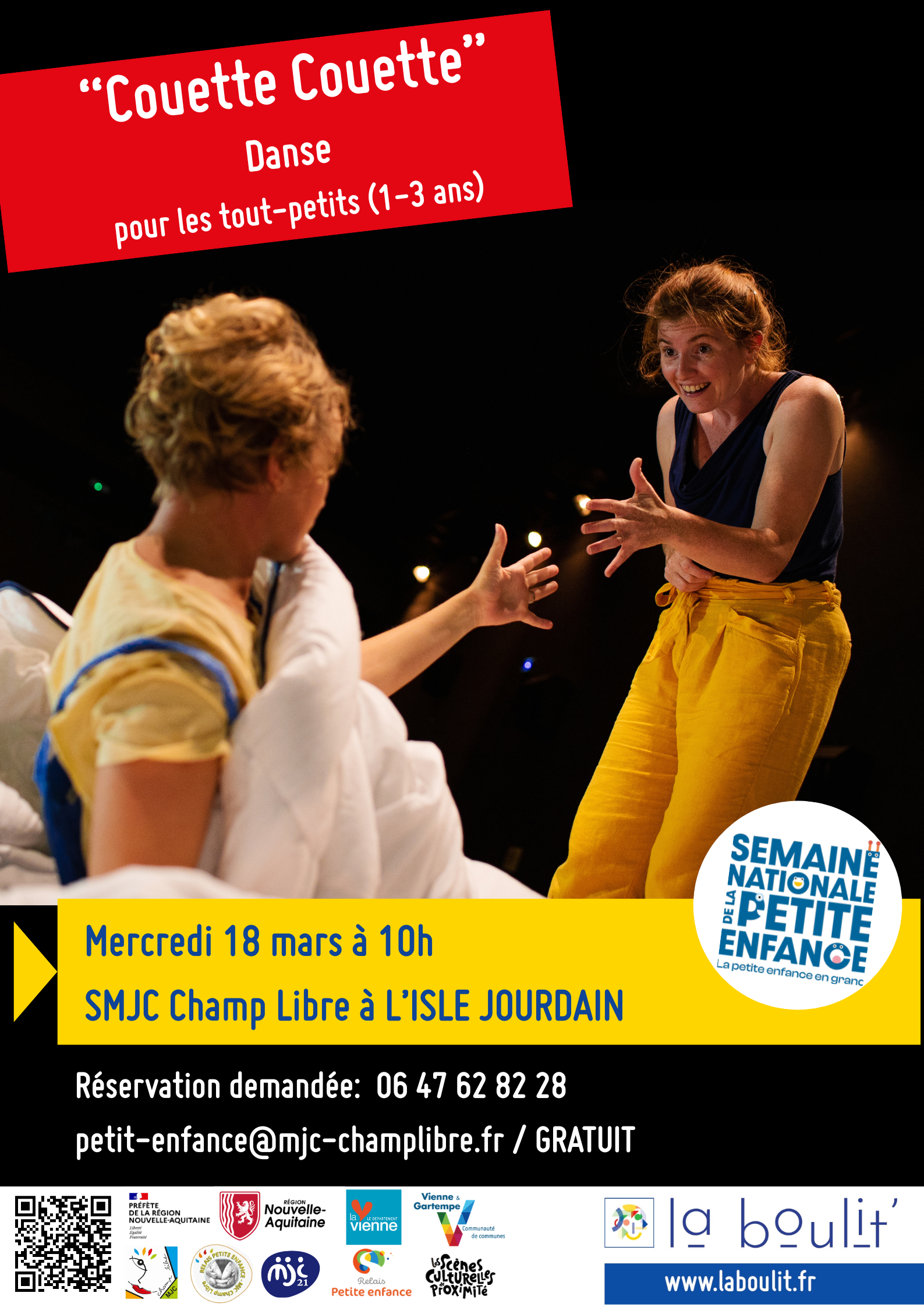 - Gratuit sur réservation obligatoire: 06 47 62 82 28 / petite-enfance@mjc-champlibre.fr