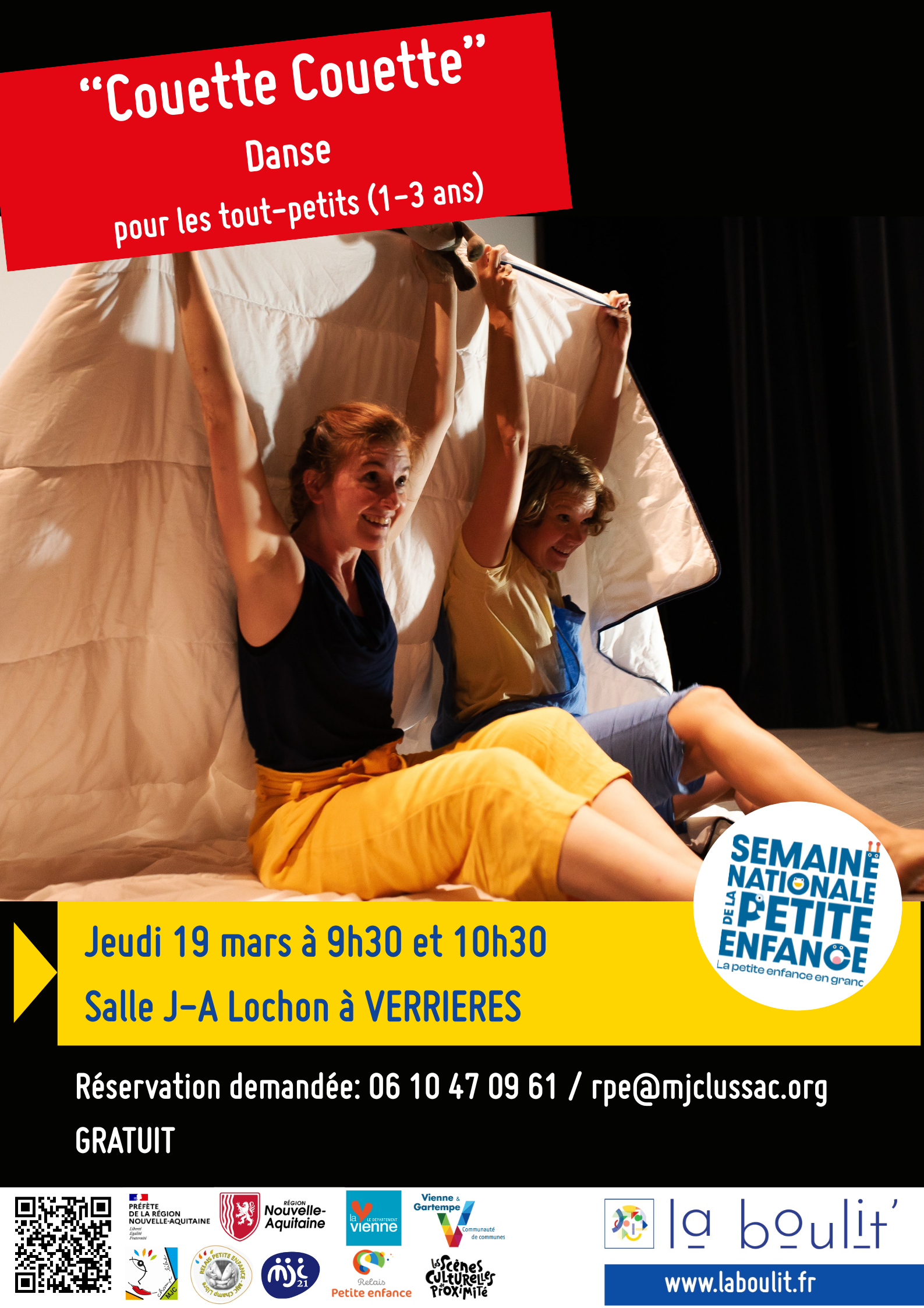 - Gratuit sur réservation obligatoire: 06 10 47 09 61 / rpe@mjclussac.org