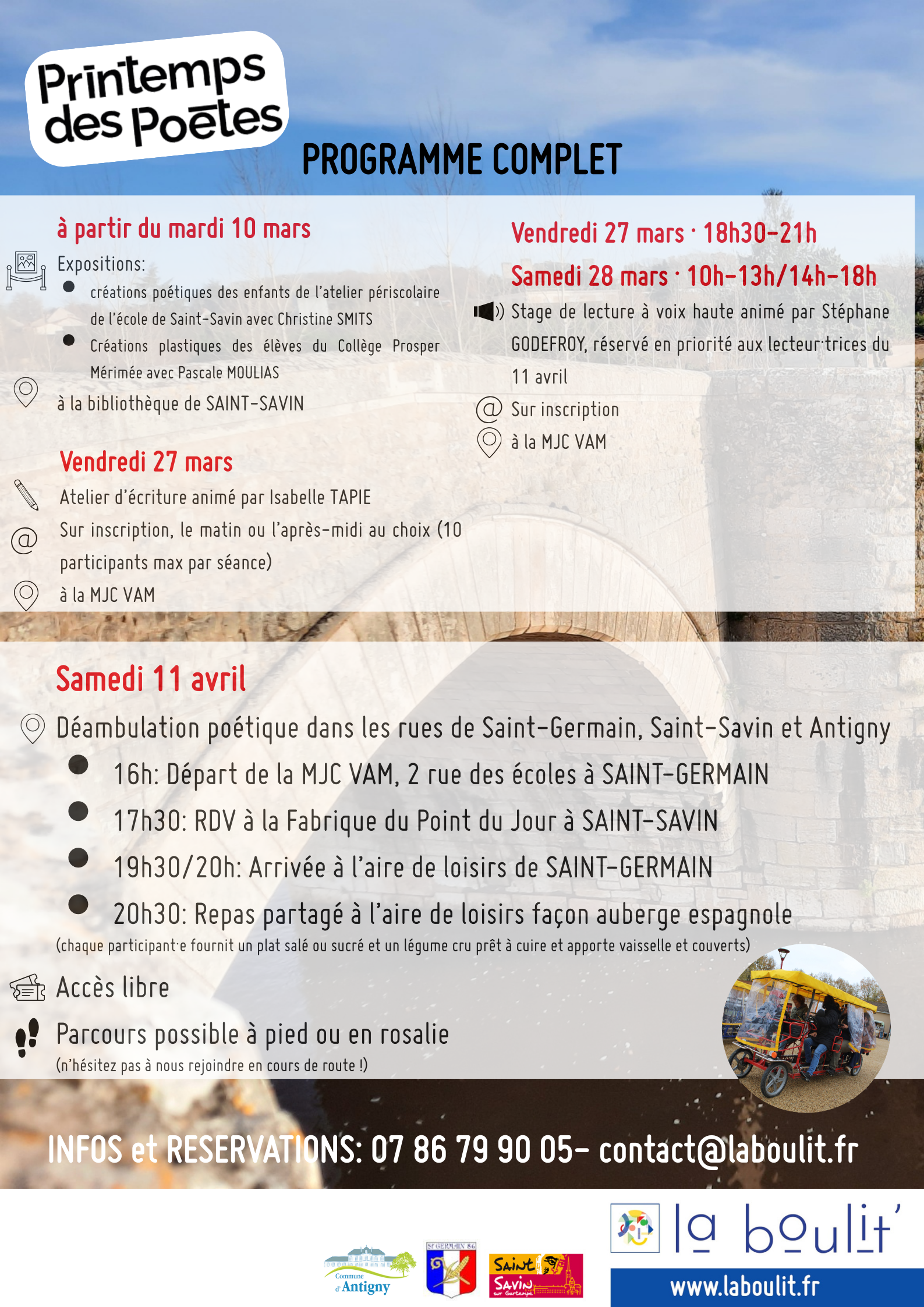 En partenariat avec un collectif d’associations, d’artistes et d’habitants, les bénévoles de la Boulit’ proposent une première édition du Printemps des Poètes en saint-savinois !